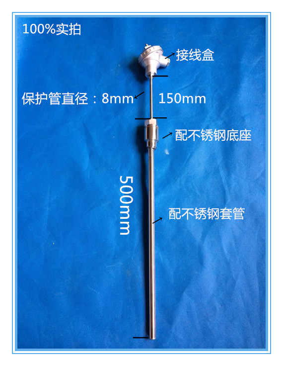 产品:一体化热电阻温度传感器 型号:WZPK-238B 规格:L=650/500mm(可选) 分度号:Pt100(可选) 量程:-200-450℃(可选)保护管直径:8mm (配底座,垫片,套管)可选 生产厂家:J9九游会-(中国)真人游戏第一品牌 详情可咨询:139-9558-7416 !