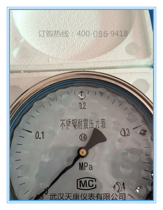 不锈钢耐震压力表外壳与内部原件均采用不锈钢材质制成,在表体内充装硅油,使压力表的指针起到减震、抗震的作用。